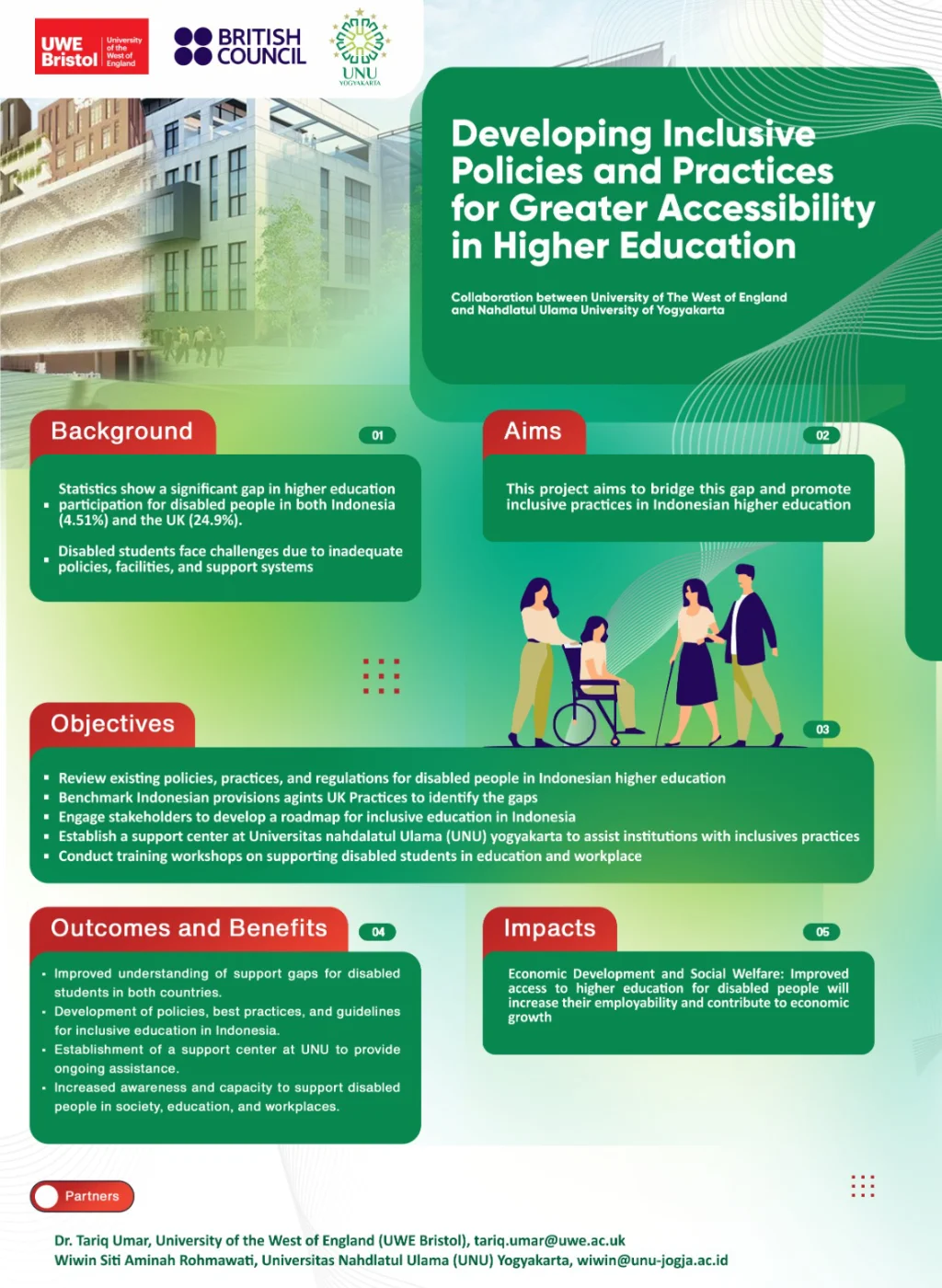 This one-year project is led by Dr. Tariq Umar, a Senior Lecturer at UWE’s Faculty of Architecture and Environment, supported by a team from UNU Yogyakarta’s Center for GEDSI.
